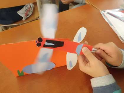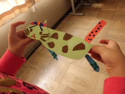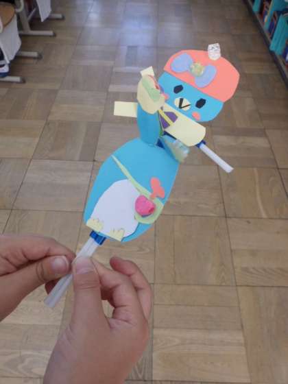 図工のストローでこんにちはの作品ができ上がってきました。それぞれ,工夫して飾りをつけがんばっていました。