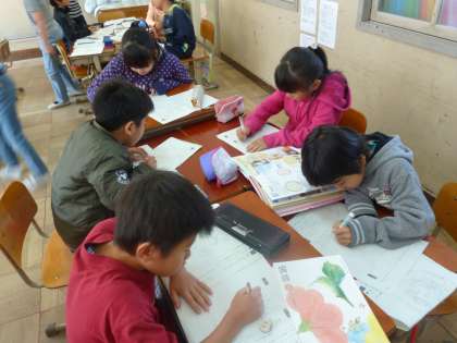 国語の「食べ物のひみつを教えます」の学習で自分たちで調べ学習をしています。栄養教諭の小野先生やお家の人にインタビューをして,グループで発表原稿を考えています。その材料がどのように工夫されて食品に変身しているかを考えています。