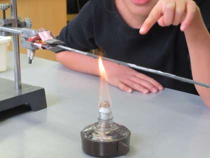 理科「もののあたたまり方」の学習で,金属がどのようにあたたまっていくのか,実験をして調べました。アルコールランプの使い方にも慣れてきて,実験もスムーズにできるようになってきました。金属にぬった「ろう」が溶けていく様子を観察し,熱したところから順に遠くへあたたまっていくということを知ることができました。