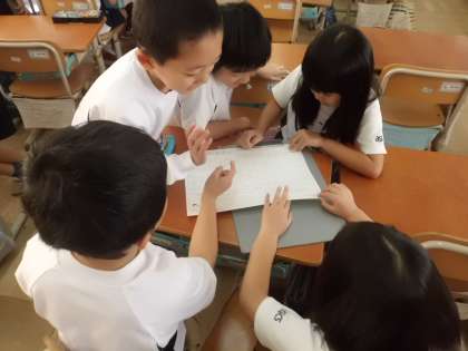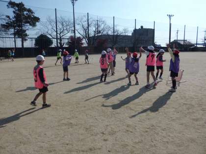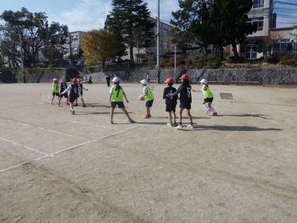 体育の授業で,パスゲームを始めました。チームを決めた後に,チームごとに役割を決めて準備をしました。ゲームを行うと,楽しんで行っていました。