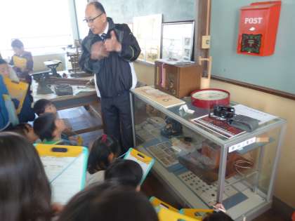 社会の「昔を伝えること」や総合の「タイムスリップ大原野」で昔の生活や昔の道具などについて学習しています。そこで校長先生に大原野小学校にある郷土資料室のさまざまな道具について説明をしてもらいました。今まで見たこともなかった道具に子どもたちもびっくりの様子でした。これからさらに学習していきたいと思います。