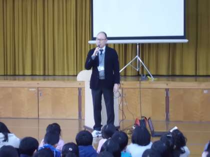 その他,スマートフォン1台で写真を撮ったり音楽が聞けたり,自動車が自動運転できたりなど50年ほど前では夢のような話が,今は現実となっています。しかし,そこには誰かが技術を使って開発したことを忘れないで欲しい。そしてみんなが大人になった時はもっともっと生活が変わっていると思うので,その時に力が発揮できるように今の勉強をしっかりやって欲しいというお話もありました。