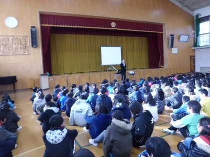 外気温が氷点下という寒い朝でしたが,今日は体育館で朝会をしました。校長先生から,開会間近のオリンピックについて,開催場所などクイズを交えて話してくださいました。その中で,個人の力も大事だけど,チームで工夫をして,よい結果をだそうと頑張っている競技もあることを教えてくださいました。最後に「学校のみんなもこのように力を合わせ,残り少なくなった平成29年度の学校生活を頑張ってください」と話されました。