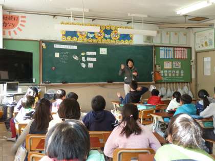 4時間目に栄養教諭の小野先生に「食べ物のふしぎを知ろう」の学習をしていただきました。今日は牛乳はどのようにすがたを変えているのか。加工とは何かを教えていただきました。