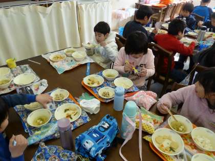 今日は給食時間にランチルームで給食を食べました。いつもとは違うメンバーで,和気あいあいとしながらご飯を食べました。今日は和給食で京都の三大漬物の「すぐき」が登場しました!