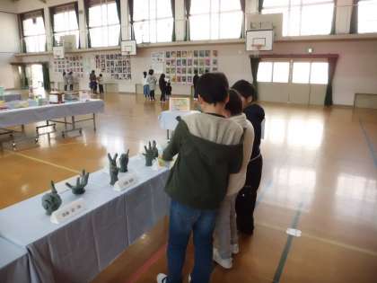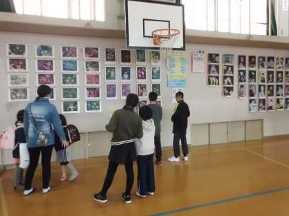校内作品展初日の6校時に,鑑賞会を行ないました。全校のすばらしい作品を鑑賞して,「心がこもった作品ばかりでとてもよかった」と感想を述べていた子が多くいました。