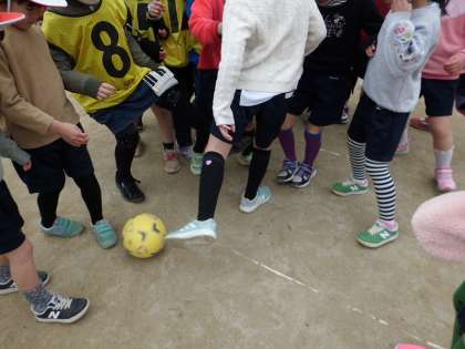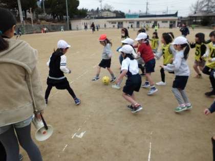中間休みに運動委員会主催の「サッカー大会」がありました。結果は2年生1点対1年生0点でしたが,みんな,ボールを追いかけて、攻め合って,とても楽しそうな様子でした。プレーで,2年生の一回り大きい姿が見られました。