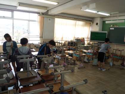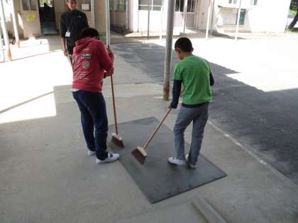 6年生はとてもがんばって掃除します。きれいになるととても気持ちがいいです。