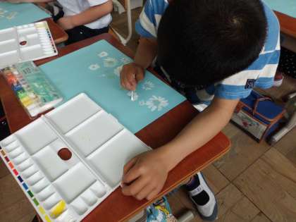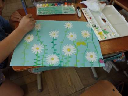 3年生は,図画工作科の時間に綿棒や爪楊枝を使い,春の生き物を描きました。子どもたちは花びら一枚一枚をとても丁寧に描きました。また,茎や葉の様子などもとても上手に描くことができました。