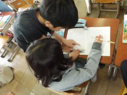 算数科の時間で「あまりのあるわり算の筆算」の学習をしました。子どもたちは,ペア学習や全体の場でどのようにしたら友達に分かりやすく伝えることができるかを一生懸命に考え,一人一人が工夫しながら取り組むことができました。