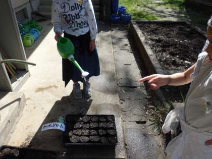 朝の水やりを終えて4年生の教室に帰る時に,子どもから突然「ツバメの巣がある!」と教えてくれました。理科の授業で,春になるとツバメの姿が多くみられることを学習したばかりだったので子どもたちはとても興味津々でツバメが飛んでくるのを待っていました。