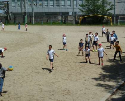 4年生になっても子どもたちは毎日ドッジボールをして遊んでいます!子どもたちは毎回「全員1回は投げられるようにボールを回す」ということを意識して,キャッチが上手にできない友達も楽しめるようにしています。3年生の時と比べ,ボールを投げるのが本当に上手になってきた子どもたちです。