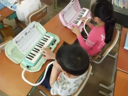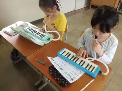 音楽の学習で,けんばんハーモニカの演奏をしました。久しぶりに演奏しましたが,タンギングに気を付けながら上手に演奏していました。これからもいろいろな曲にチャレンジしていきたいと思います。