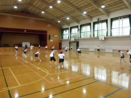 体育の授業でリレーをしている4年生は,今回は運動場の状態が悪かったので体育館での練習となりました。よりスムーズにバトンを渡すにはどうしたらよいのかについて考え,子どもたちから「バトンを受ける時の助走のタイミングが上手く合えば前回よりもタイムが速くなる。」など,運動場ではなかなかできないチーム練習に集中して取り組むことができました。次回の体育の授業でどんな結果が出るのか楽しみです。