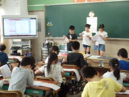 4年生の係活動の中に学習係があります。いろいろな活動をしてくれていますが,今回は朝の時間に漢字の学習を進めてくれている様子を紹介します。デジタル教材を使い,4年生で習う漢字を友達と一緒に勉強しています。書き順を何度もみんなと確認して丁寧な字を書きました。