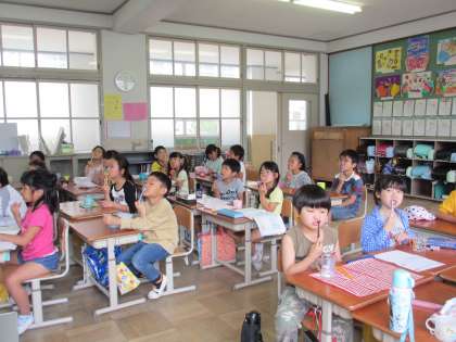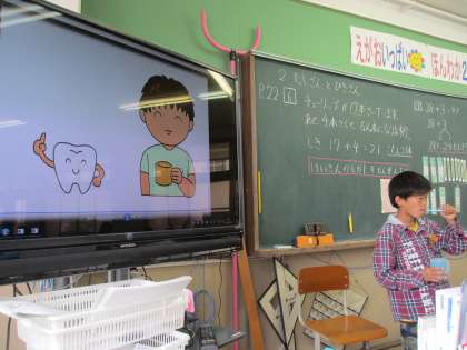 保健委員会の「はみがきハッピーデー」の取り組みが始まりました。6年生が見本を見せながら教えてくれました。1日3回はみがきをする習慣をつけて虫歯予防に取り組みたいと思います。