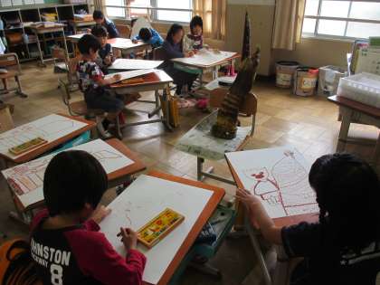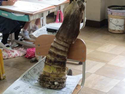図画工作の時間に,大原野で採れた「たけのこ」の絵をかきました。細かい部分も丁寧にかいて,それぞれ特色のある絵がかけました。色をぬるのが楽しみです。