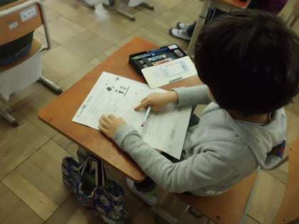 わり算を学習している3年生は文章問題にも挑戦しています。問題をしっかりと読み,単位のつけ忘れなどがないように何度も見直しをしました。