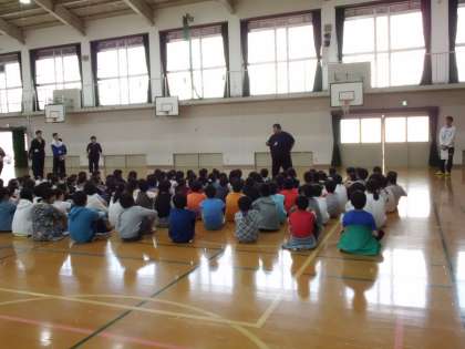 本年度も,相撲部・陸上部・バレー部・サッカー部・書道部・ミュージック部・和太鼓部と合計7つの部活動が開講します。今日11日(金)の昼休みに開講式がありました。校長先生から「部活動は上手になることだけが目標ではありません。自分から決めた部活なので,1年間続けて頑張ることが大切です。」というお話がありました。その後,担当の教職員との顔合わせがありました。