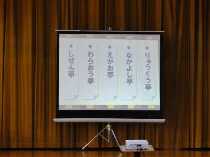 6月13日の「影向舎」の寄席鑑賞に先立って,5月14日(月)1,2校時にワークショップがありました。落語,寄席がどういうものかを知るとともに,5年生が事前に考えた寄席のテーマの中から当日,どんなテーマで寄席をするかを決めました。テーマは「りゅうぐう亭」です。どんな落語になるか,当日がより楽しみになりました。