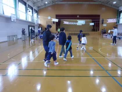 10日(木)に1年生を迎える会がありました。6年生に手をつないでもらって嬉しそうに入場しました。大きな声で自分の名前を発表し,すごくがんばりました。その後,クイズや貨物列車のゲームを行い,楽しく過ごしました。
