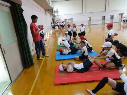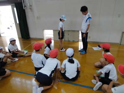 4年生と6年生と一緒に新体力テスト「握力」「反復横跳び」「長座体前屈」「上体おこし」「立ち幅跳び」「ソフトボール投げ」を行いました。子ども達はグループで協力して新体力テストを楽しみながら取り組みました。