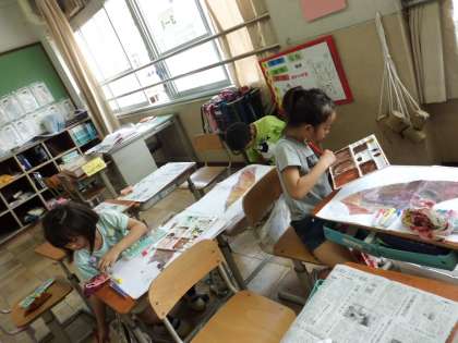 先週,図工「色・形・いいかんじ」の学習で,竹の子を描きました。