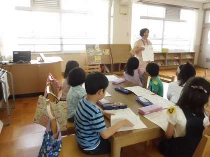 図書館に行き,遠山先生から先週の続きの学習をしました。本の題名・作者・ラベルのことや本の借り方を教えてもらいました。本が借りられどの子もうれしそうにしていました。教室で借りた本を楽しそうに読んでいました。