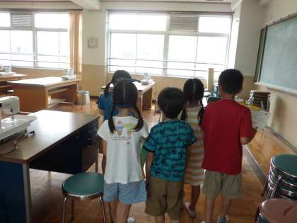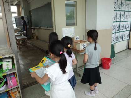 1年生と2年生で,学校探検をしました。2年生が1年生をやさしく案内してくれて,とてもほほえましかったです。どのグループも,それぞれの教室に,どんなものがあるか興味深げに見ていました。探検が終わると楽しかったと喜んでいました。