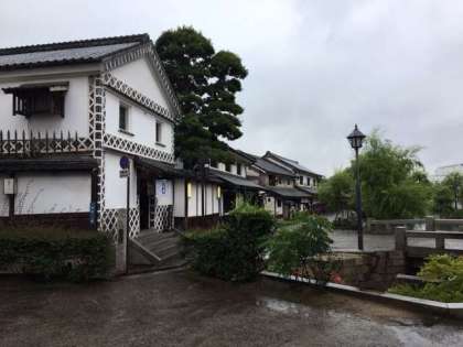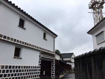 白壁の屋敷など美観地区の雰囲気を楽しんでいます。