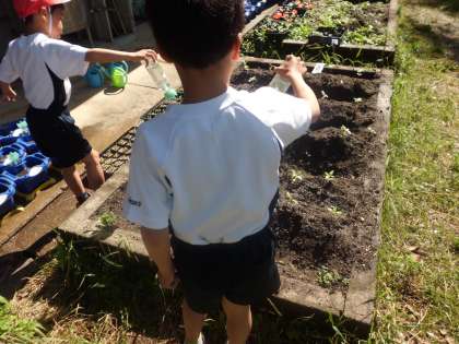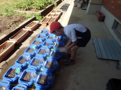 暑くなってきましたが,3年生は今日も水やりを頑張っています。先日,ひまわりの苗を花壇に植えかえたのですが,子どもたちは,そちらも丁寧に水やりをしてくれました。これからさらに気温も上がりますので,体調管理に気をつけながら頑張りたいと思います。