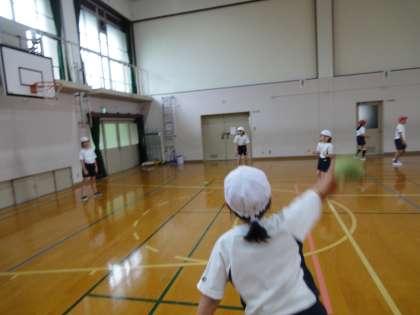 体育の学習で「ベースボール」を始めました。この日は雨だったので,体育館でティーボールを使って,キャッチボールをしたり,打ったり守ったりしました。とても楽しそうで,次も子ども達は楽しみにしています。