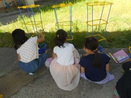 国語科の学習で,ミニトマトの観察メモを書きました。花や実を丁寧によく見て,たくさん気が付いたことがあったようです。顔をぐっと近づけてにおいをかいだり,触ったりして,詳しく書く材料を集めていました。めざせ!かんさつ名人!