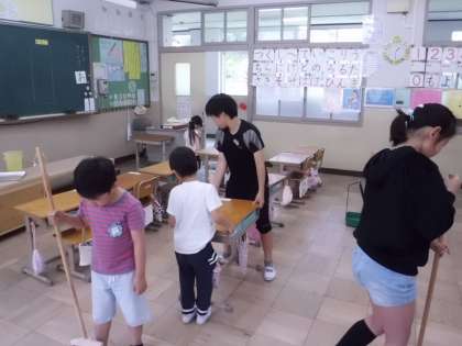 1年生に掃除を教えています。