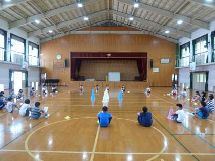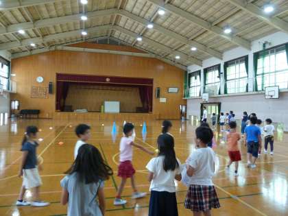 今日の学活の時間にキャンプファイアーの練習を行いました。レク係の子どもたちが中心となり,入退場の仕方や,ゲームのルール説明をしてくれました。キャンプファイアーで歌う歌もだいぶ覚えられ,大成功しそうな予感がします♪