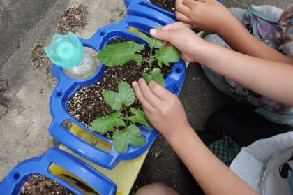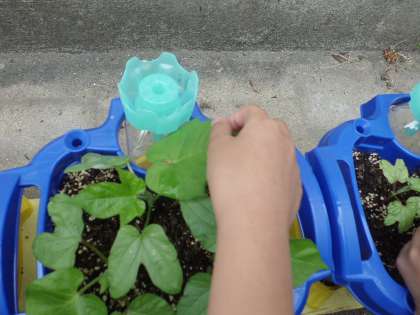 本葉は,子葉と同じか観察しました。「先生!わかった。子葉は,つるつるしているけれど,本葉はちくちくする。」「形も違う。」としっかりと見つけていました。