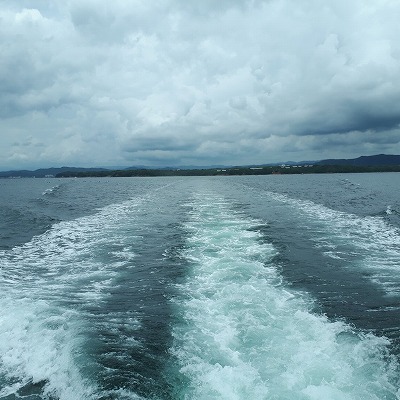 賢島からなかよし港まで,雄大な英虞湾の景色と海風を楽しみながら,船で移動しました。ついに,みさきの家に到着です。曇っていますが,予定通り活動できそうです。