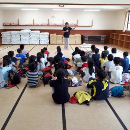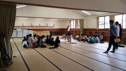 オリエンテーションで,所員の方から,みさきの家での暮らしかたについて説明をしていただいています。