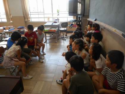 毎週月曜日に,読み聞かせ係が絵本を読んでくれます。抑揚を付けて読んだり,話の途中でクイズをしたり,楽しませてくれています。最後は,感想を発表して清々しい一週間のスタートです。