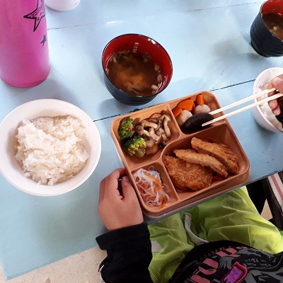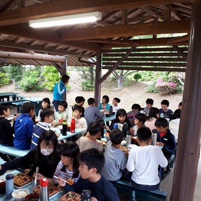 たくさん歩いたので,みんなしっかり夕食をいただいています。