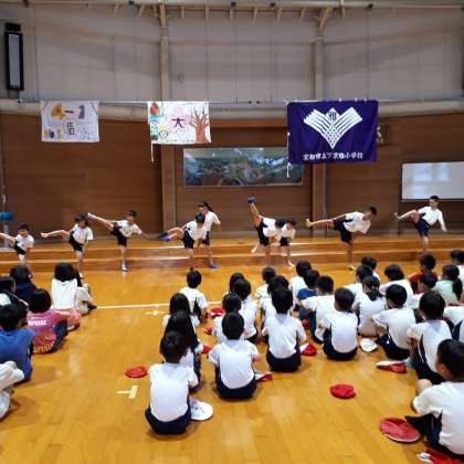今日は雨です。朝の集いを,プレイホールで行いました。今日も一日,協力して絆を深めたいと思います。