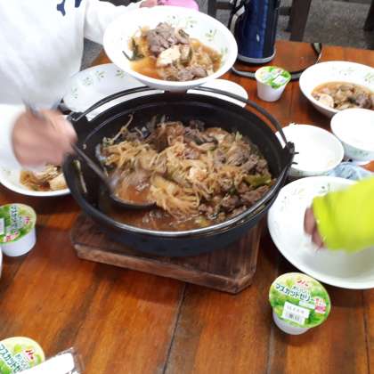 グループで協力し,おいしいすきやき風煮ができあがりました。