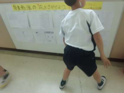3年生は自主学習をとても頑張っています。担任の先生から子どもたちの頑張っている自主学習の内容を廊下に掲示してもらうことで,たくさんの子どもがそれを見て,「次はわたしもこんな自主学習をしよう!」などたくさんの発見がありました。