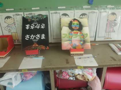 教室の後ろに本が2冊あります。本係の子どもたちが,次の読み聞かせの時にどの本を読んでほしいかをアンケートしてくれています。本係の子どもたちは,みんなが興味を持つような本を上手に選んでくれています!どの本を読んでくれるのかとても楽しみです。