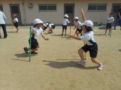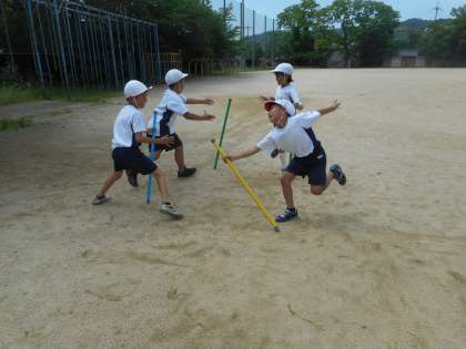 体育「ようぐあそび」の学習で,棒を操作しバランス感覚を意識した活動をしました。相手の棒を倒さないように取るために,友だちと声をかけ合って楽しく工夫していました。
