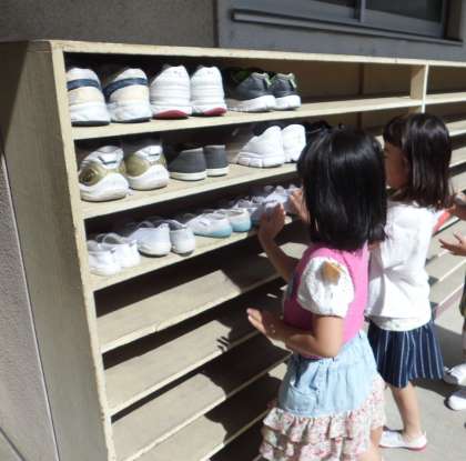 くつ箱に上ぐつや体育館シューズをしまう時も,くつをそろえてきれいに置くように気をつけています。何事もていねいにきちんと身につけていけるようにがんばりたいです。