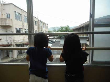 雨が降ってきて,「外で遊べないね。」「うん,遊びたかったね。」そんな会話が聞こえてきそうです。でも,1・2時間目にみずあそび出来てよかったですね。