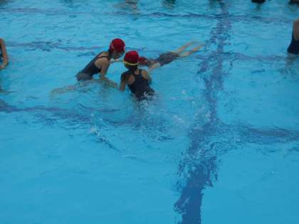 力を抜いて,プカ〜っと浮いていますね。水の中でじゃんけん!頭まで水をつけて,楽しく安全に活動していました。