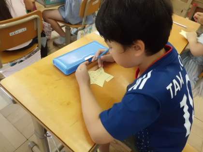 友達から,星形のメモに書かれたメッセージを受け取った子どもたちは,照れながらも嬉しそうでした。