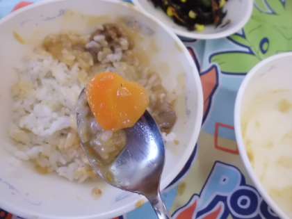 カレーのにんじんがハートの形をしていました。入っていた子どもは,大喜び。感想を書いて,しおりと交換してもらいました。